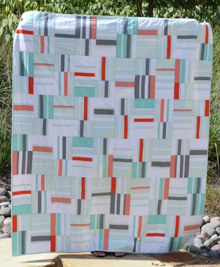 My very first quilt made from Kate Spain’s Fandango line for Moda. I bought fat quarters before deciding upon a pattern…when I settled on a simple patchwork quilt I really wished I had bought charm packs!
