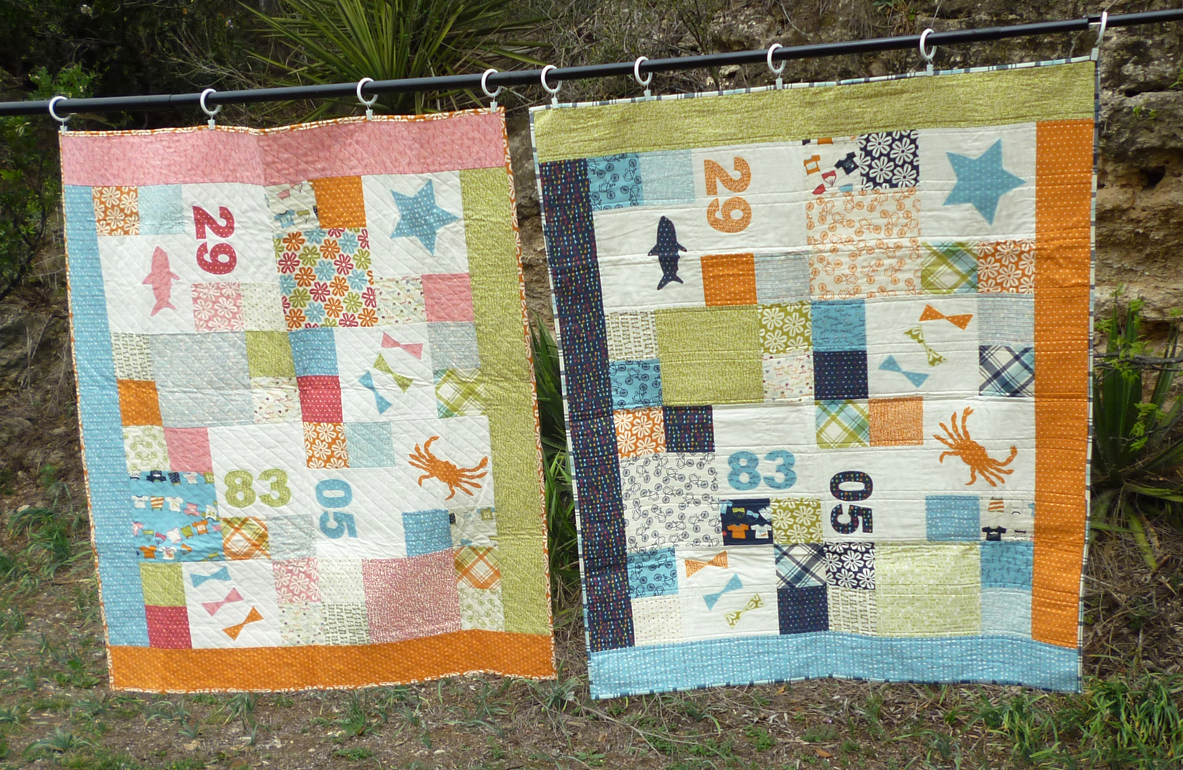 His and Hers lap quilts using Lucy’s Crab Shack by Sweetwater for Moda. Pattern also by Sweetwater.